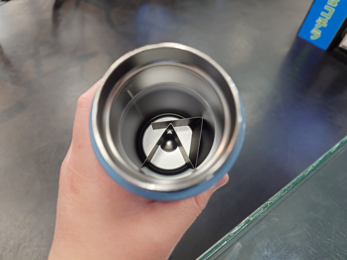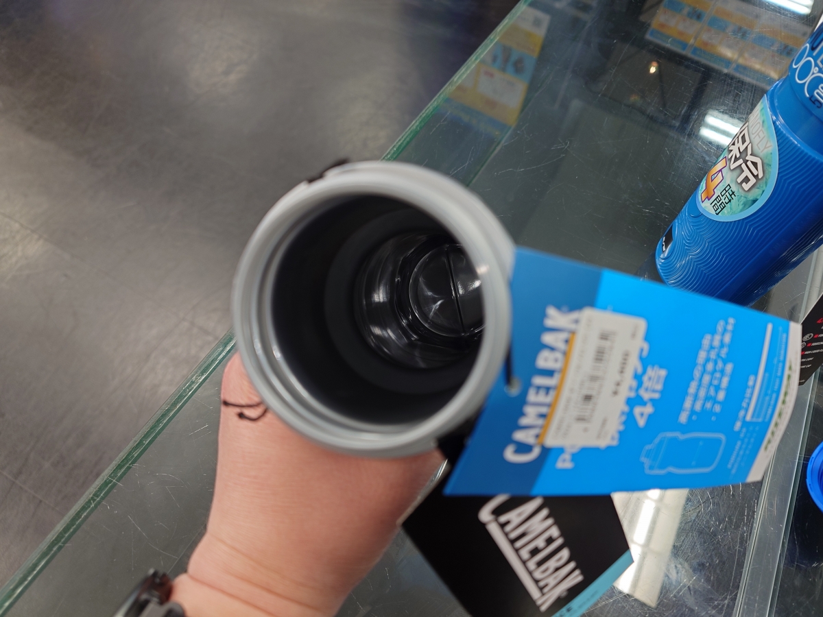 覗き込むとハッキリとわかりますが、まさにみんなが知ってる保冷の水筒と同じ内部構造をしています。