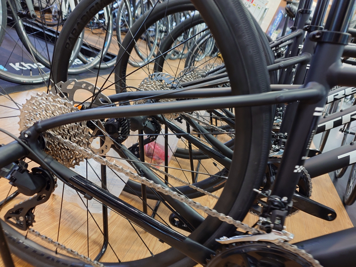 こうして各サイズ店頭に置いているということは、跨り比べることもできるいうこと。