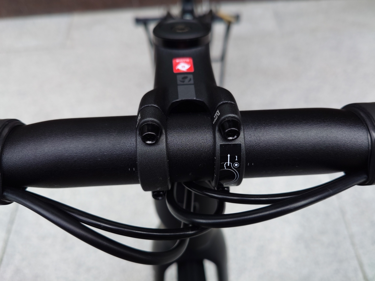 Bマークのあるステム、これがブレンダーシステムという対応するライトやサイクルコンピューターなどをステムに直に取り付けるマウント。