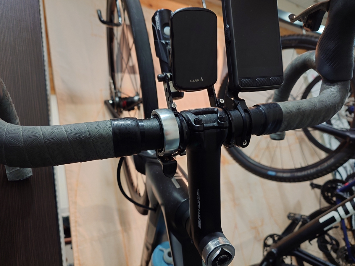 ハンドルの細いところが22.2mmです。特にフラットバーでは22.2mmの部分に取り付けることがあると思いますが、ロードバイクですとほぼ装着できませんので、ご注意ください。