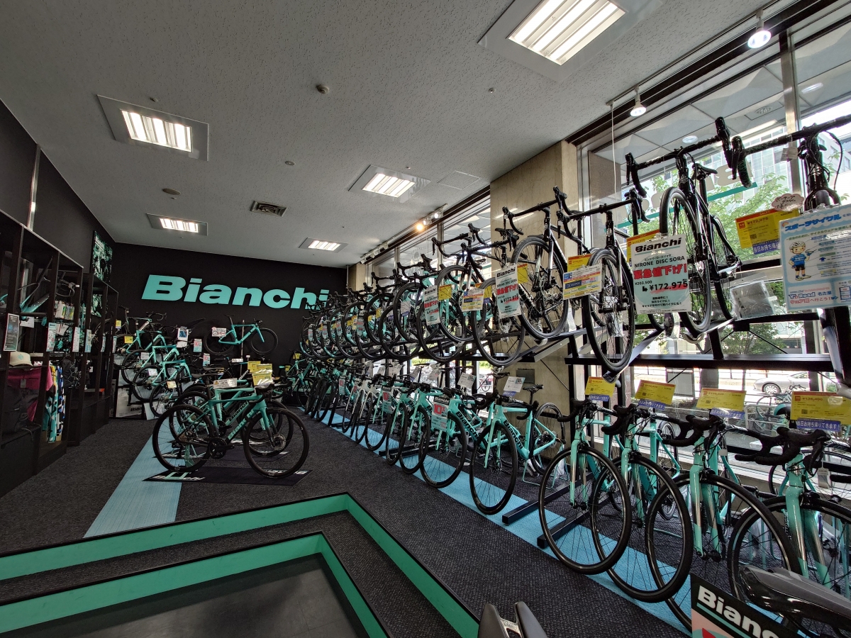 ビアンキをお買い求めでしたら、是非当店へお越しください。特価の車体、エントリーモデル、そしてハイエンドモデル。かなりの品揃えでお店を構えています。