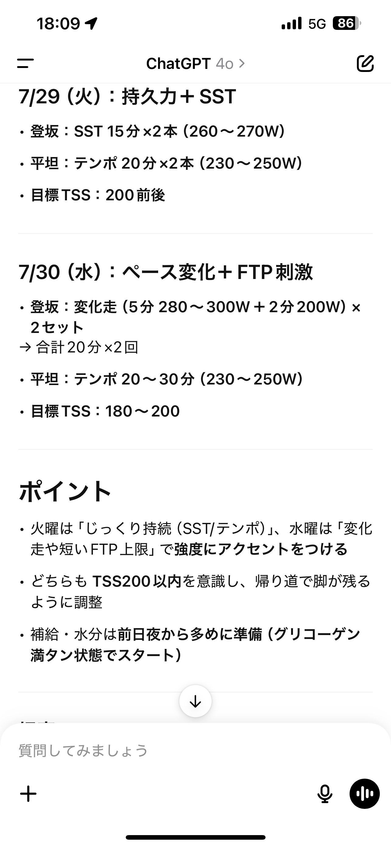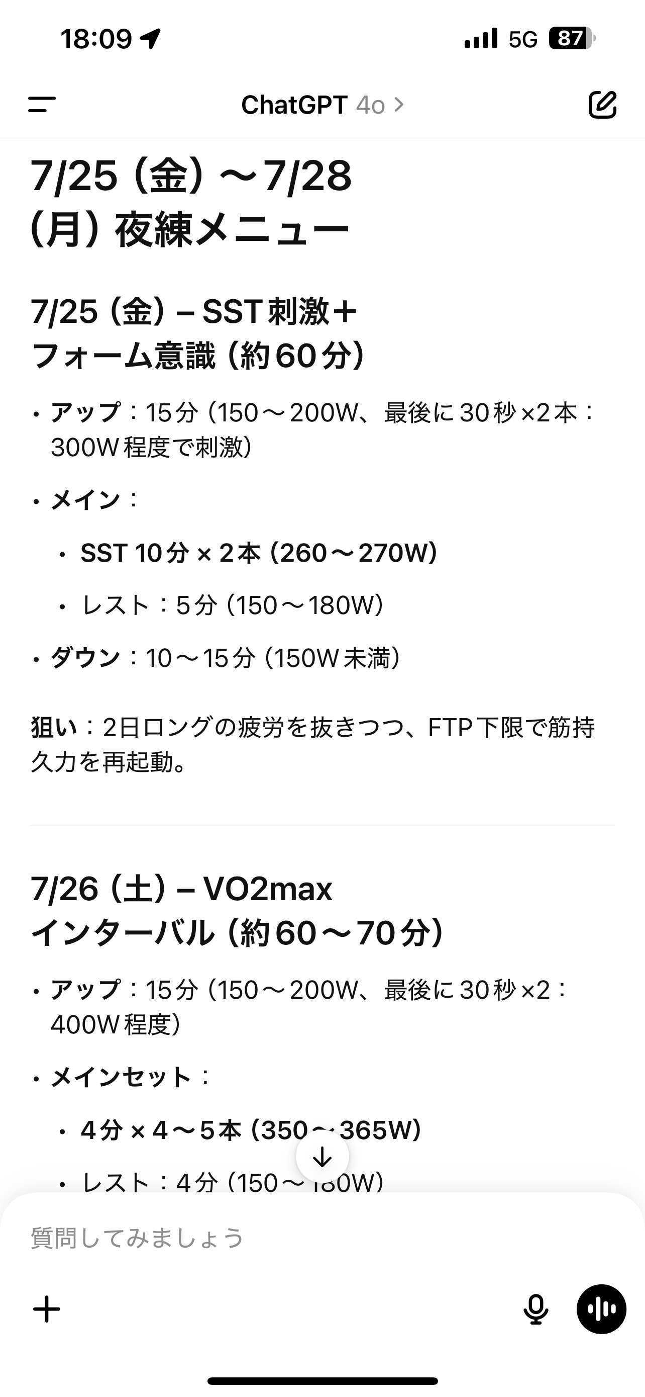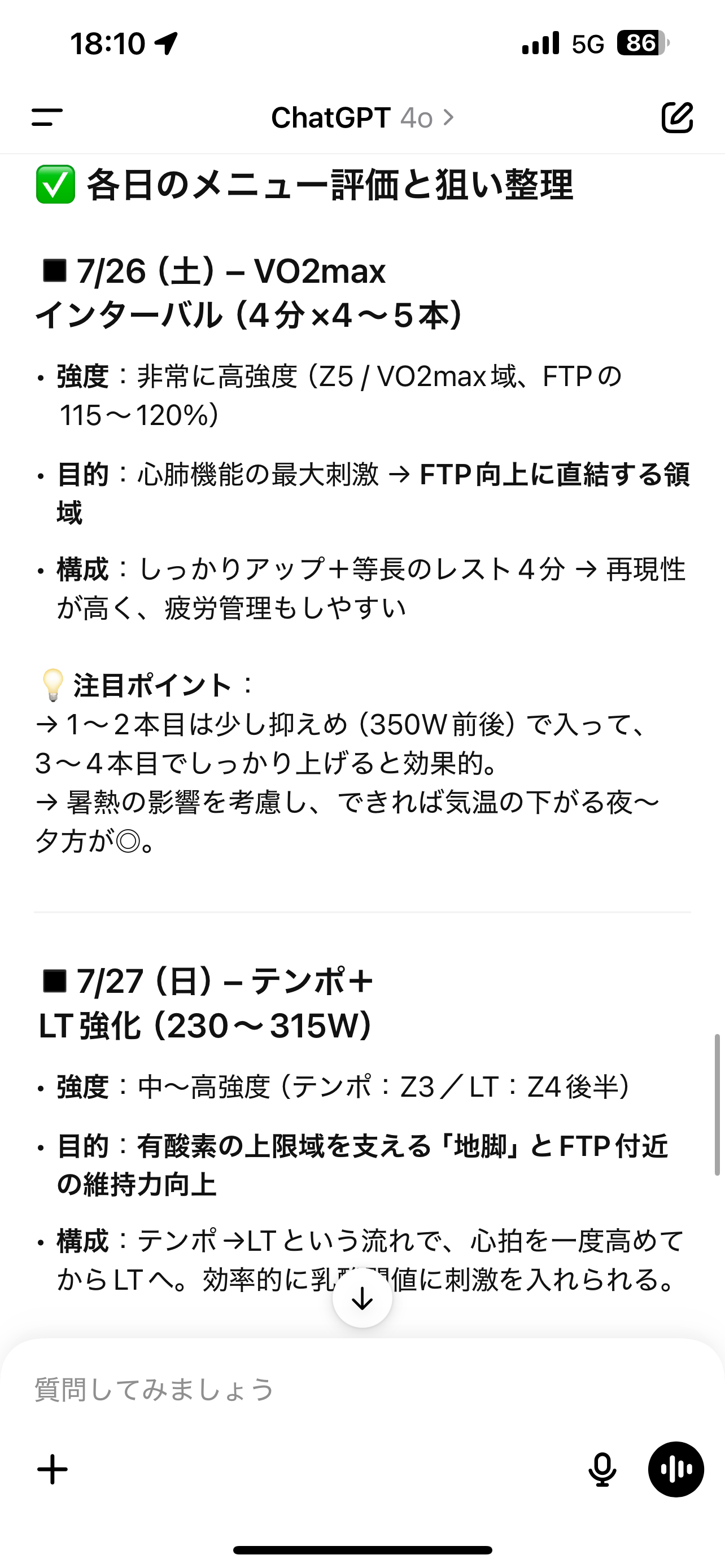練習は、ただがむしゃらに走っているわけではありません。トレーニングメニューはChatGPTの知恵を借りて組んでいます。