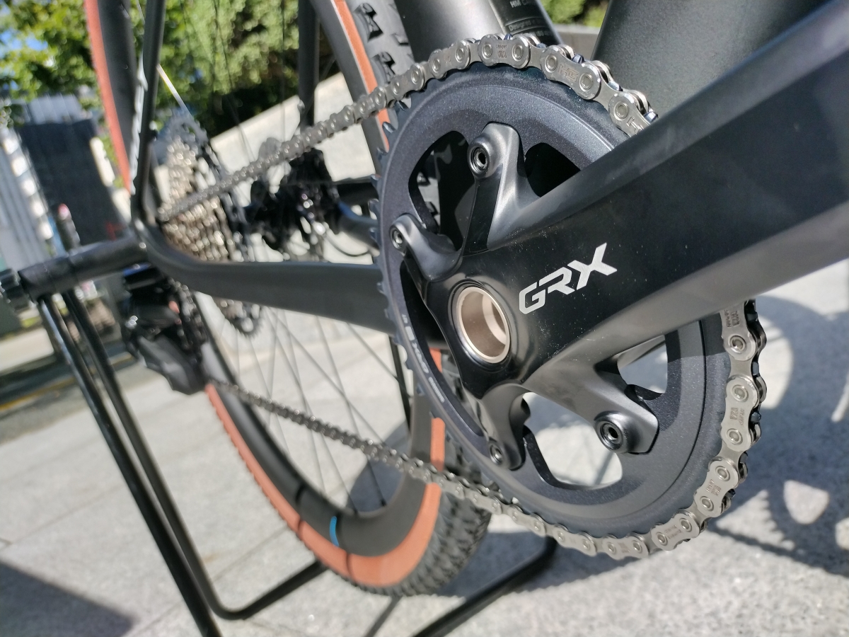 ホイールにはGRXグレードのWH-RX880を搭載しており、剛性は当然でグラベルらしい乗り心地の良さを実現しつつ、重量は1397gと純ロードホイールに勝るとも劣らない軽さです。