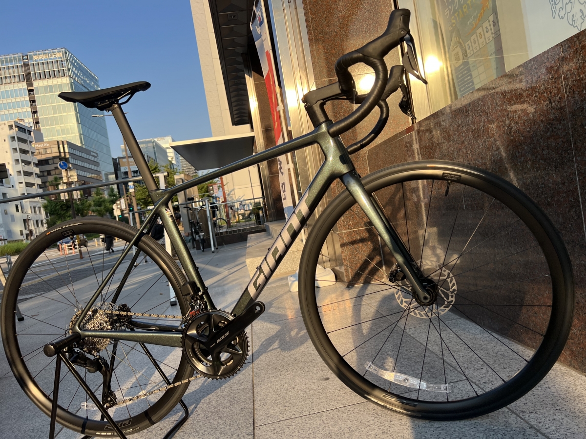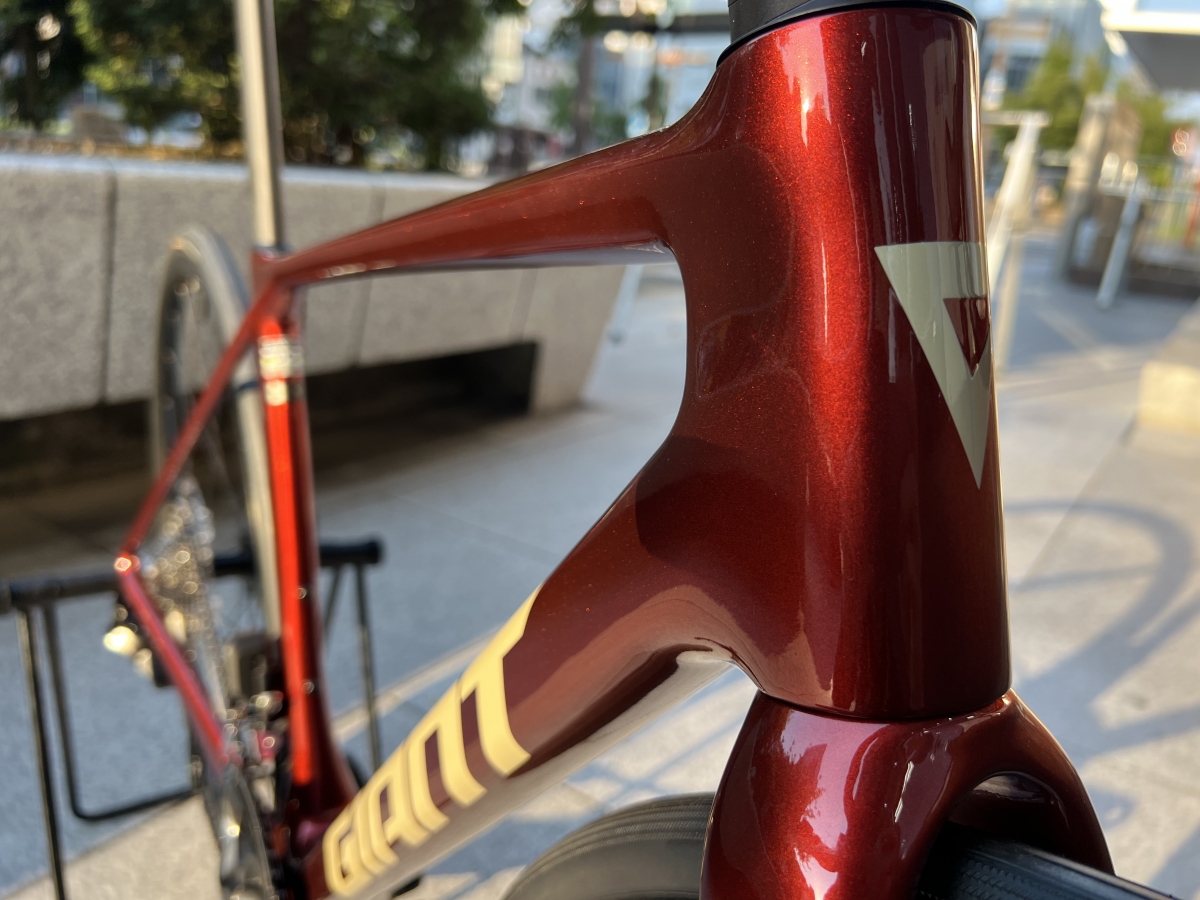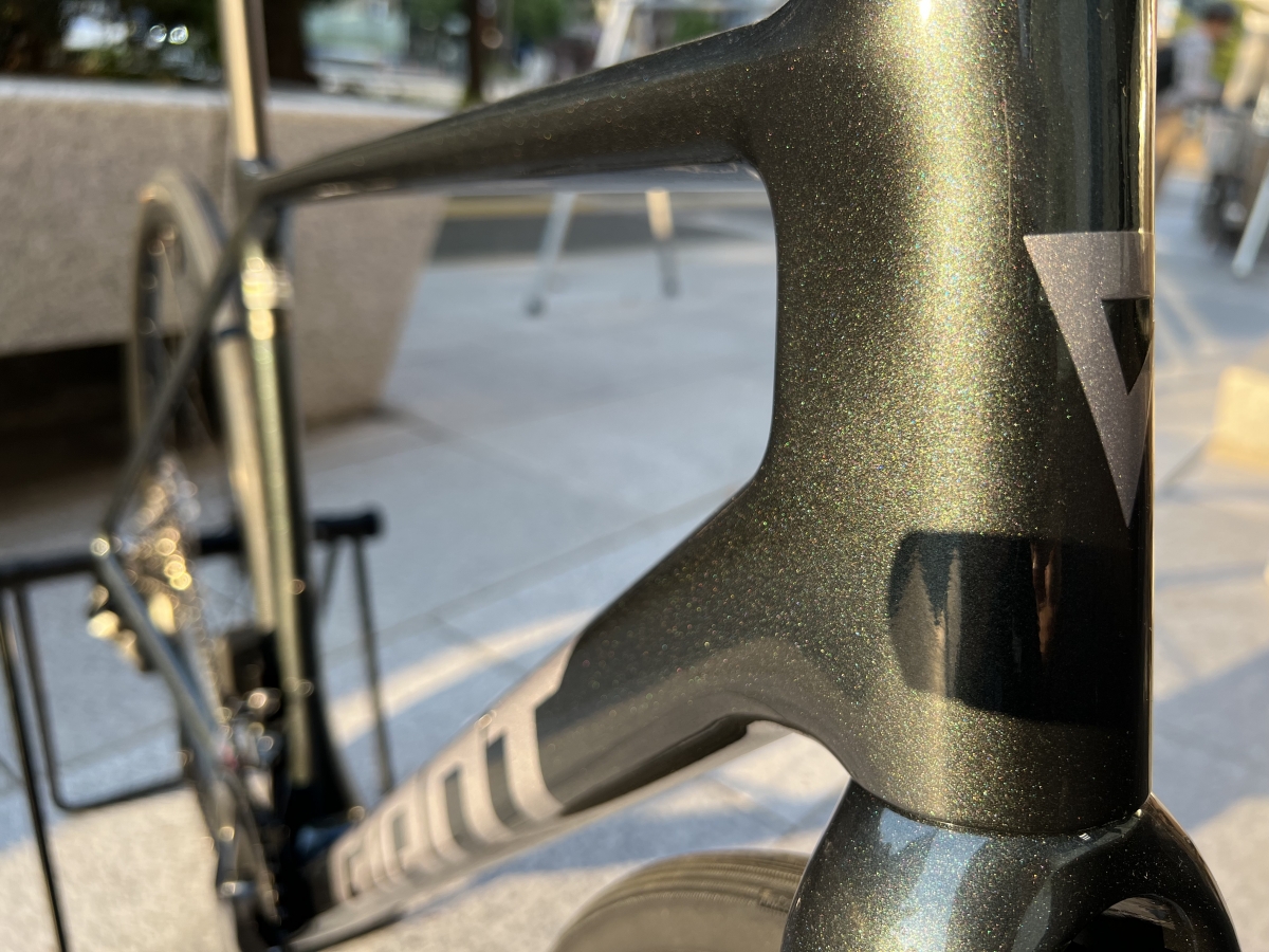 ミドルグレードのカーボンフレームなのですが、完成車重量が8.3kgになるほど軽量で、タイヤ幅は最大33㎜まで装着可能な最新トレンドをおさえた1本で、タイヤ次第ではヒルクライムから快適ロングライドまでなんでもこなせます!