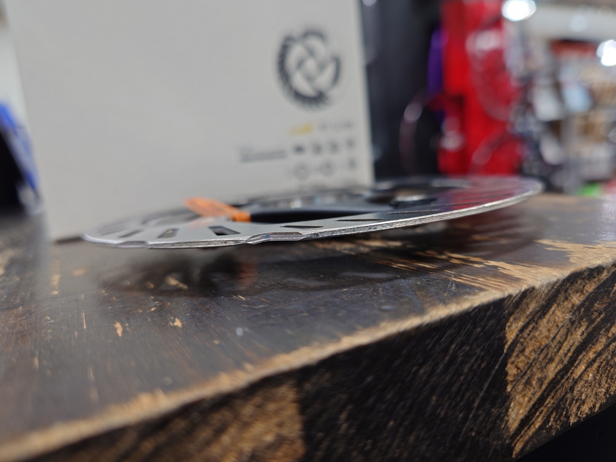 あえて比較しますが、これはデュラエースグレードのローター、CL900。面取りがされているのは確かですが、仕上げの良さはカーボンチに軍配が上がります!!