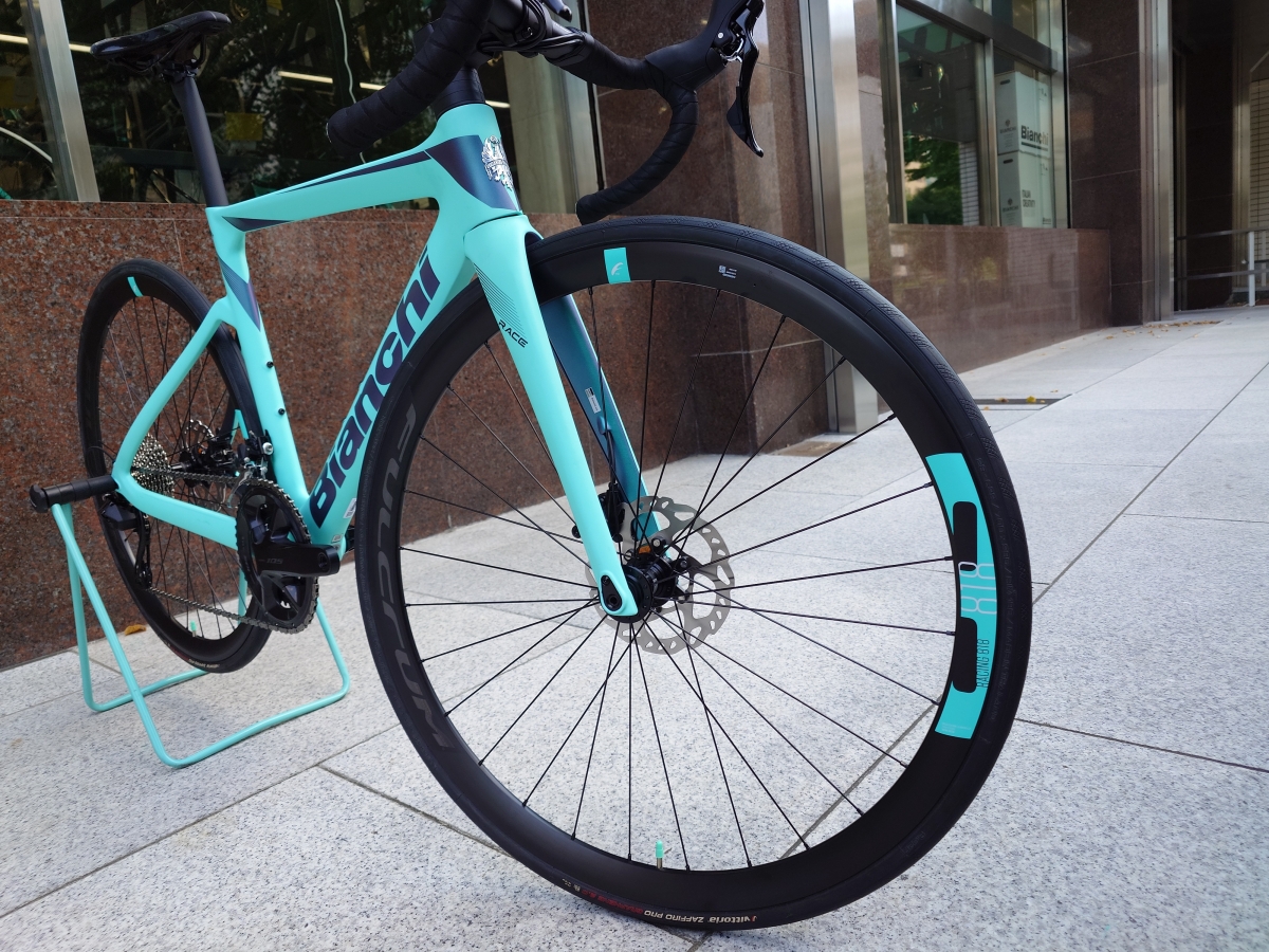フルクラムのホイールも新車装着の為、チェレステで架装されています。これはアフターマーケットに存在しない商品なので、かなりテンションが上がります!!