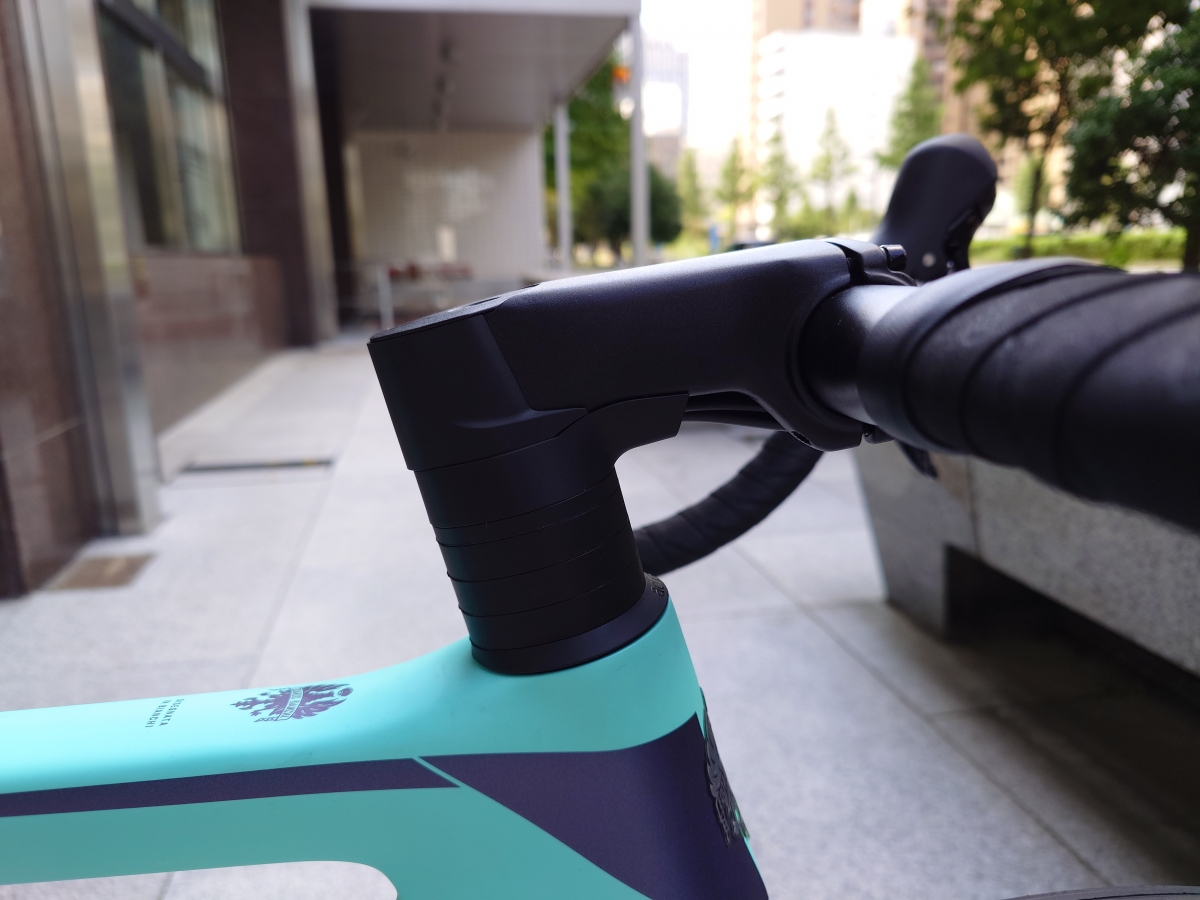 RACEになって進化したのは、ヘッドがICRになりケーブル内装対応に。しかし、ハンドルの根本は丸いので、DHバーも割と簡単に付きます。だから低価格でトライアスロンに対応したバイクを作成できるという大きなメリットがあります。
