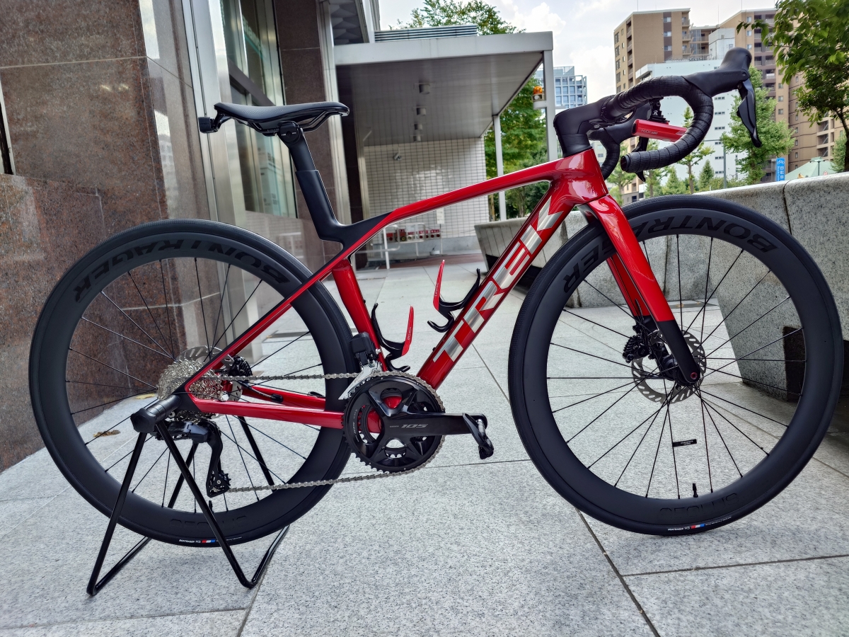 テーマは赤。MADONE SLという価格改定によりコスパの鬼と変貌したニューカラーの一台。