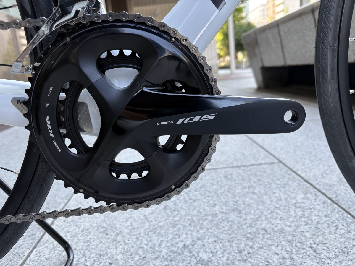 コンポーネントは全て105を装備しています。基本的にコンポーネントは105があればレースに頻繁に出る人以外は困ることはないです。しかも他のメーカーの105完成車と比べても安いので超オススメの一台になってます。