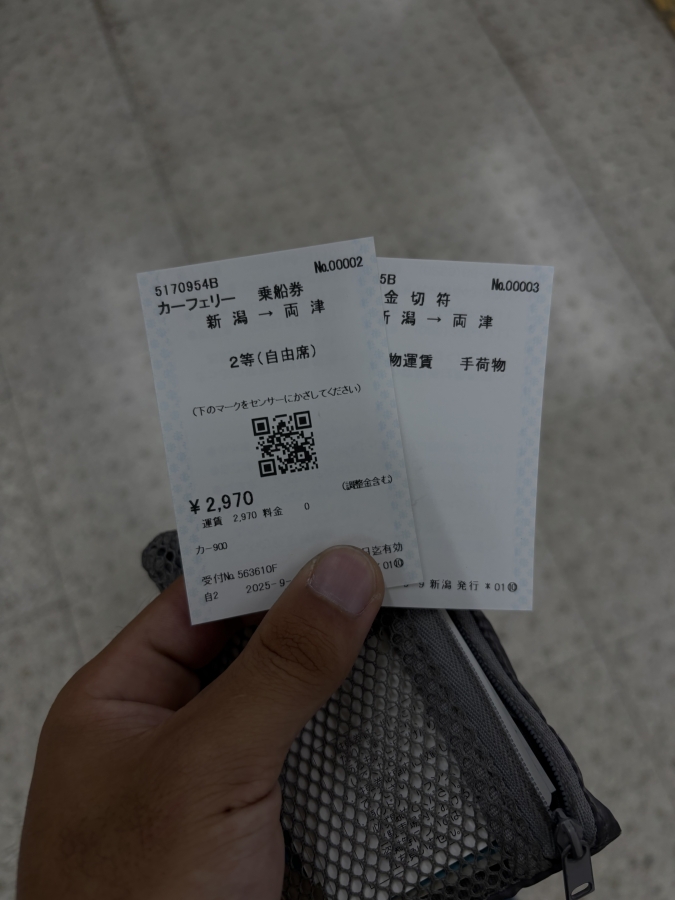 朝4時。今回は新潟港から佐渡汽船の始発便に乗ってスタートします。車で新潟まで行ったので、新潟港に車を停めていきました。