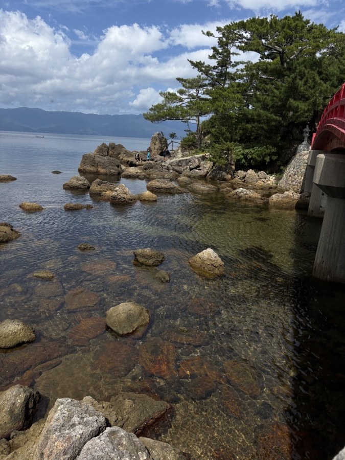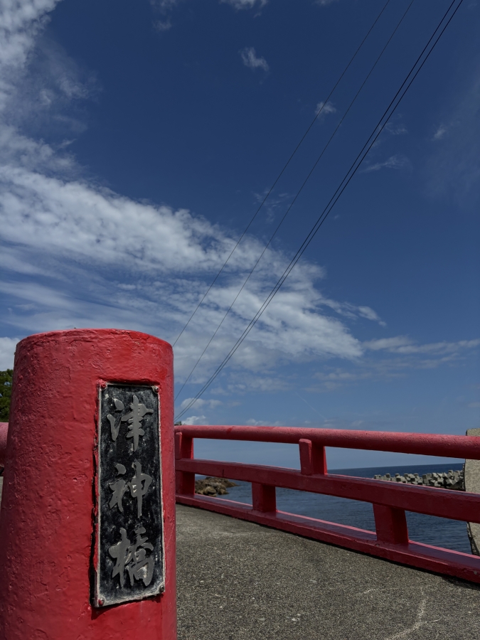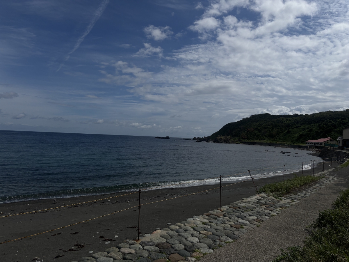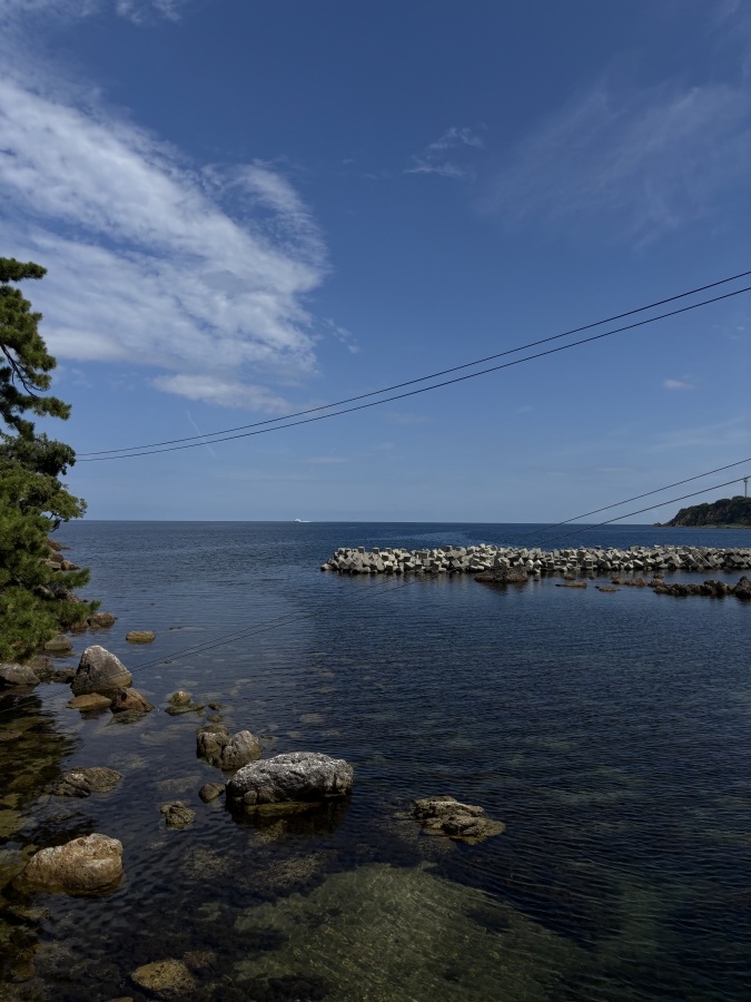 日本海にあるので、沖縄とかとは違う海の色をしています。透明で深い青色の海でした。