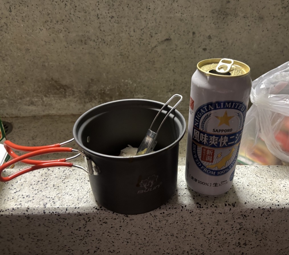 がんばって温泉まで行き、買い出しをしてキャンプ場に戻って、キャンプ飯をつくります。