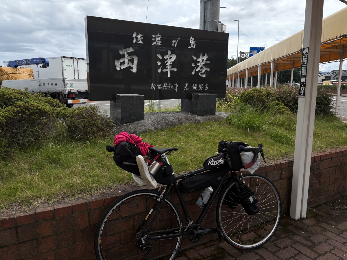 2時間ほどで佐渡島・両津港に到着。輪行を解除して出発です!