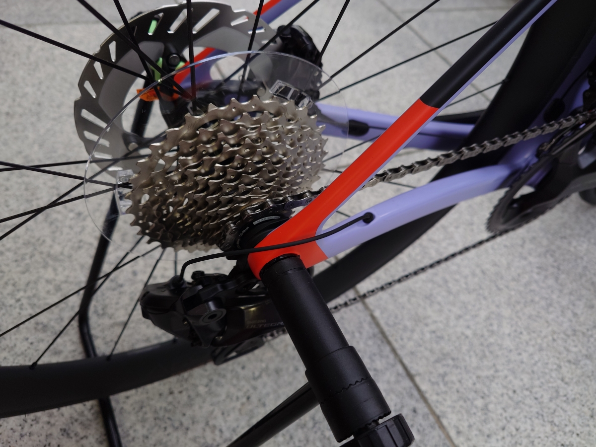 ディレーラーのサイズ感は上位モデルのデュラエースと同等で、かなり軽量で変速もスムーズ。