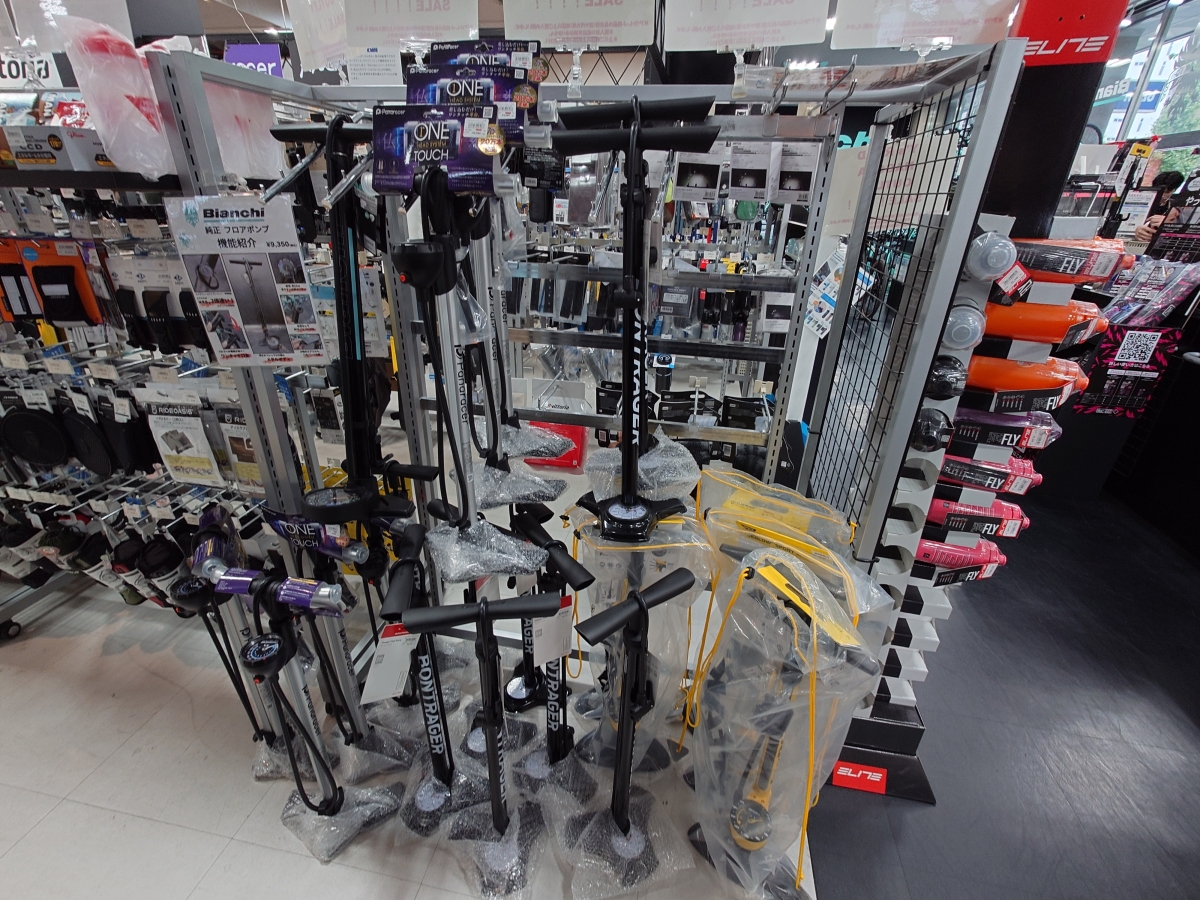 フロアポンプコーナーにたくさん用意しましたので、是非ご利用ください。