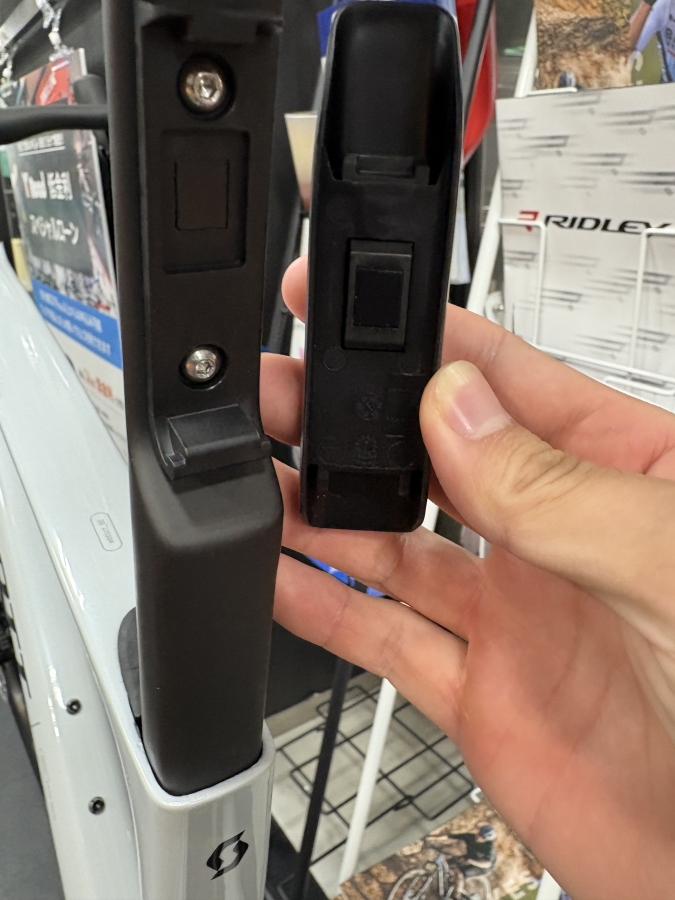 こんな感じです。磁石でくっついています。テールライトを付けることで空気抵抗となっていましたがこれからはそれともおさらばですね。