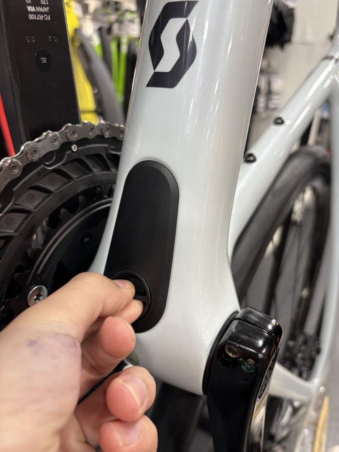 次はパンク修理工具です。というよりかはこれはダウンチューブ裏に収納スペースがあるという感じ。