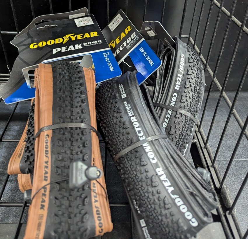 現在では、グラベルなどに使えるグッドイヤーのタイヤを置いてます!