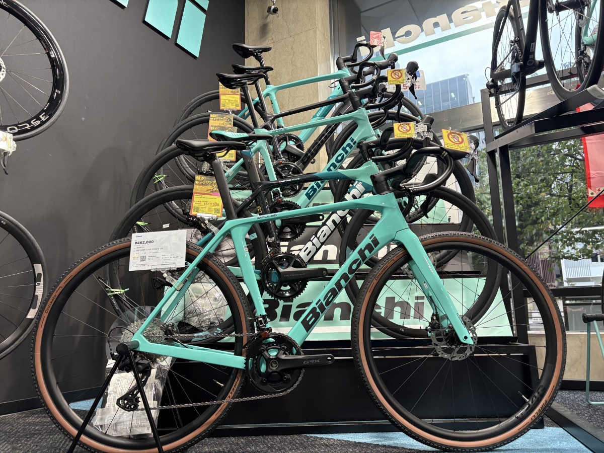 最後までお読みいただきありがとうございました。私個人の感想としてはコスパに非常に優れていると思いました。RCやPROと比べれば性能は見劣りしますが、上位グレードと同じ形状をしたフレームで46万円なら十分どころか完璧なのではないでしょうか。何よりこのBIANCHIは THE「BIANCHI」というカラーで超オシャレに決めてる一台となっております。当店ではグラベルロードに限らず、幅広いジャンル、モデルのバイクを取り揃えています。気になった方は是非店頭までお越しください。