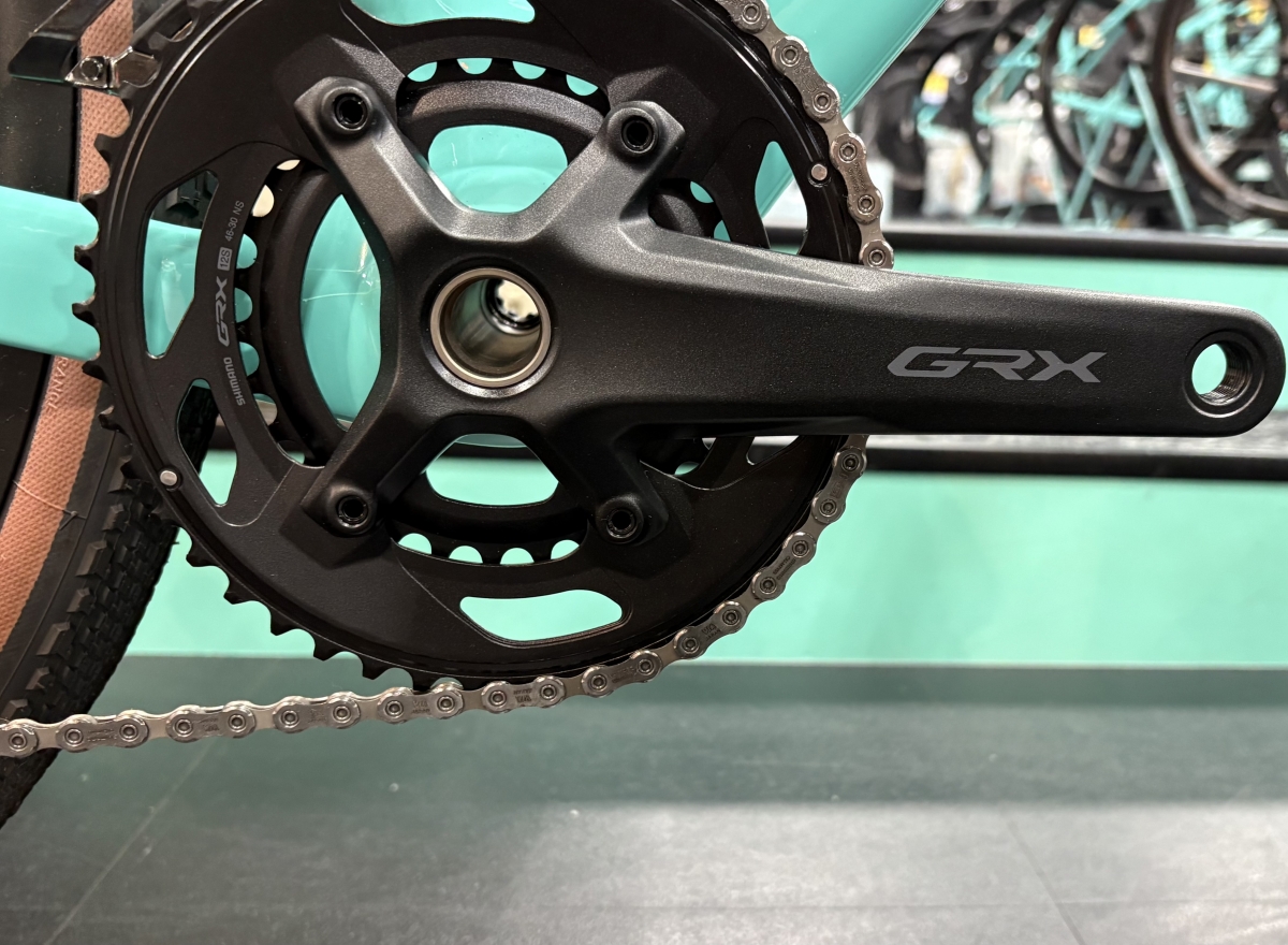 コンポーネントは安心と安全のSHIMANO GRX。耐久性を備えながらレースで勝つ為の本気仕様となっています。