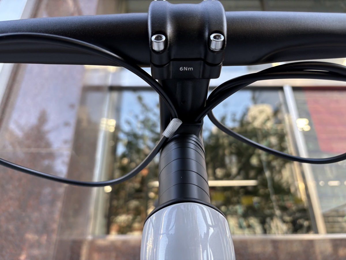 ケーブルは最近の定番となっているヘッド部から中に入っていく仕様。スマートな見た目と高い空力性能を提供します。ケーブルの多い機械式105モデルでもヘッドスペーサーから全てのケーブルを内装できるためまるで上位グレードのような上品できれいなヘッド周りとなります。