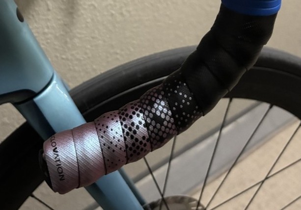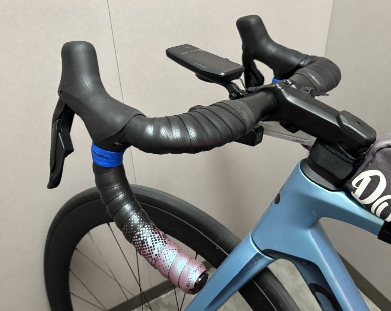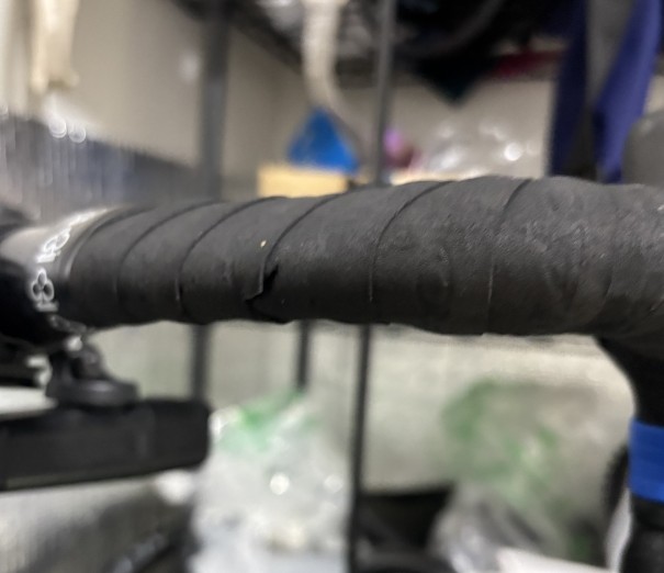 いろいろ考えた結果、色が水色と黒しかないせいだと気づきました。しかもこのバーテープ、ボロボロやんけ!!