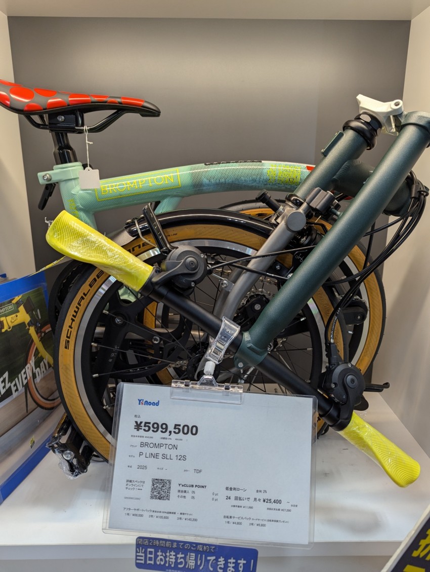 写真のPラインは世界一過酷なレースと言われるツールドフランスの限定カラーもあったりと、遊び心ある塗装のモデルもあるのがブロンプトンの特徴です。