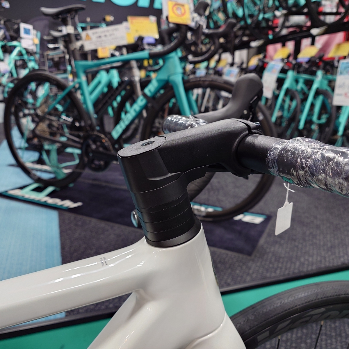 ケーブル自体は新型になってヘッドに内装されるようになりまして、スッキリしました。カーボン車は現在ほとんどがこういう形に進化して格好良さが増しております!!