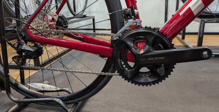 コンポーネントはしっかりとSHIMANO 105を採用、変速性能はもちろんのこと、12sであるためアルテグラなどの他パーツが使えるので、カスタムの幅が広がります!