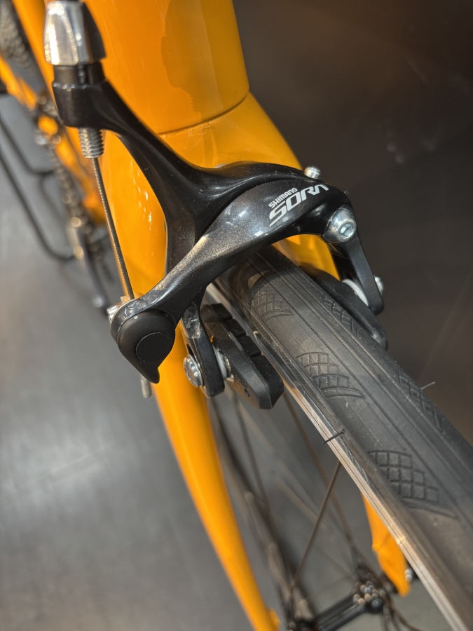 アルミ製ロードバイクに定評のあるキャノンデールからリリースされている、ロードバイクのエントリーモデルです。こちらカラーはマンゴーで、秋めいてきた今日にも合っていて、かつエネルギッシュさも感じます!