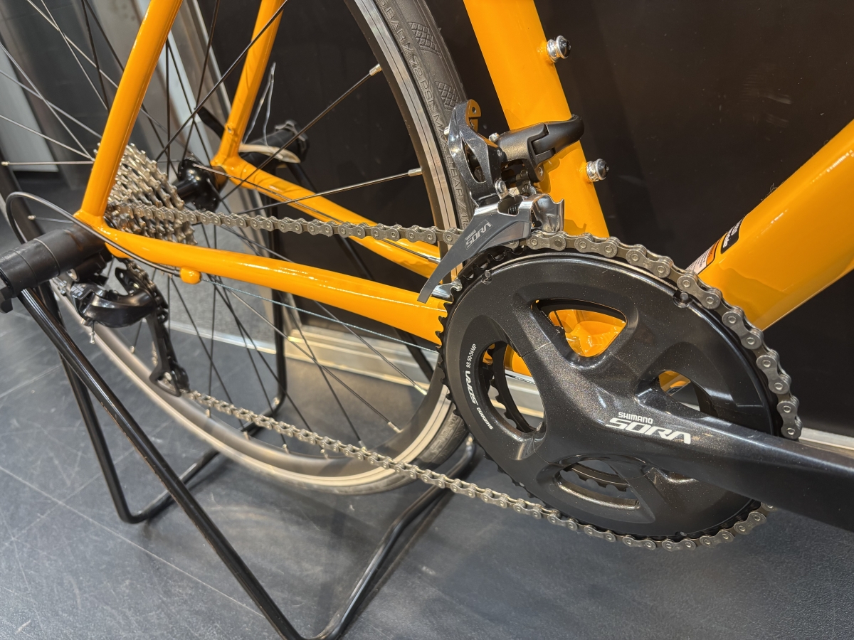 リムブレーキ仕様のSHIMANO Sora を採用しており、軽量でコストパフォーマンスもとても高くなっています!通勤・通学にはもちろん、ある程度のスピードでも走ることができるため、ロードバイクを始めようと思っている方には頼もしいです!