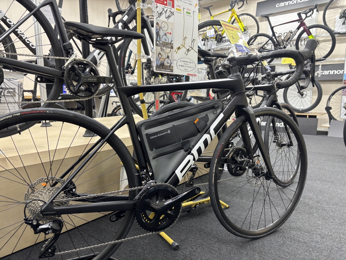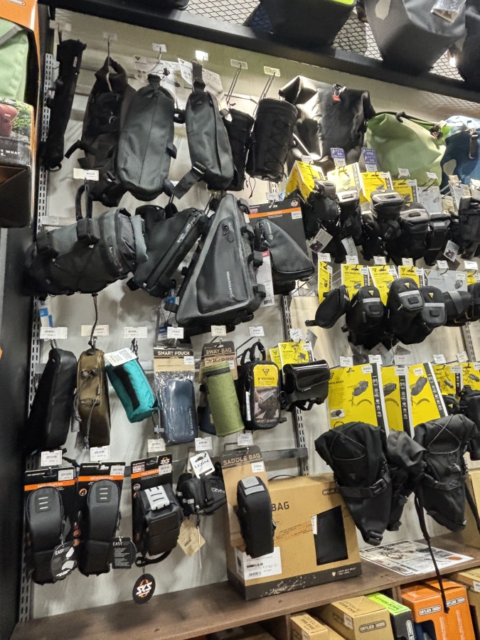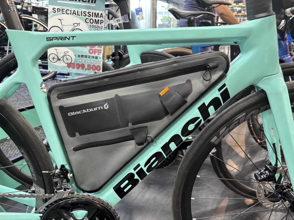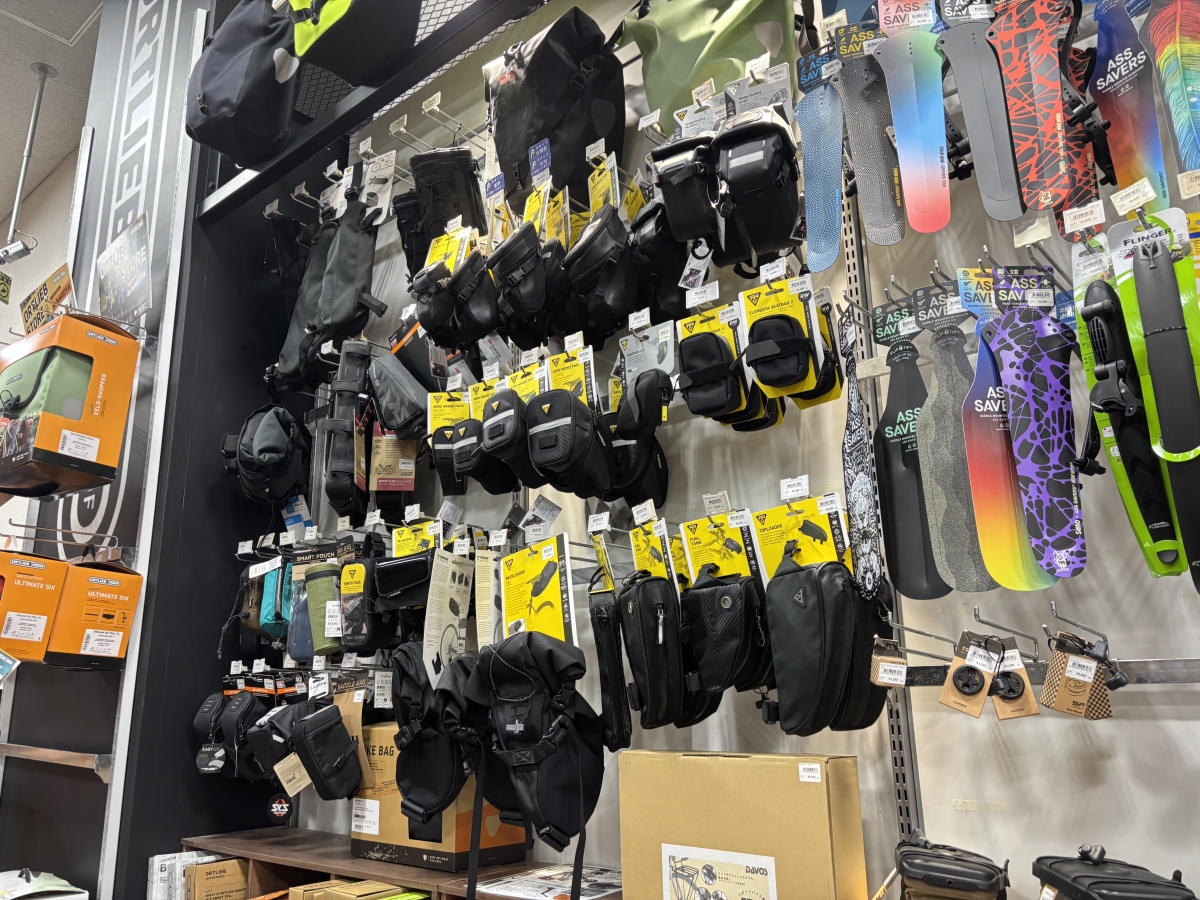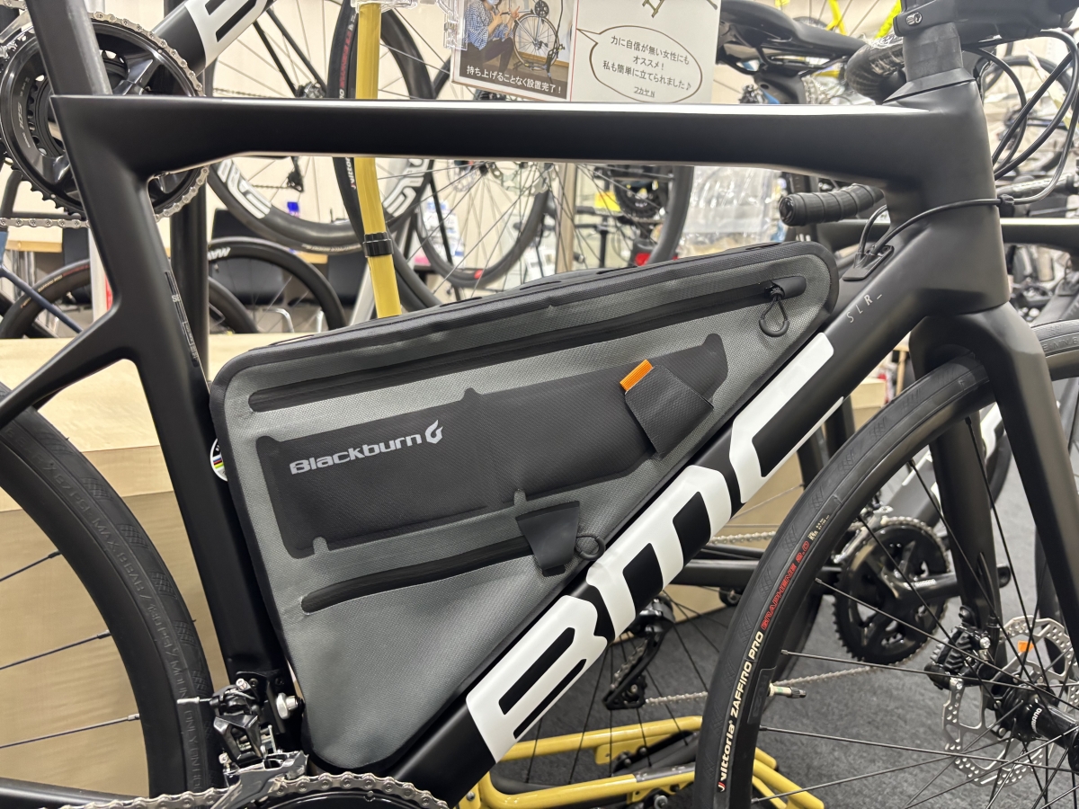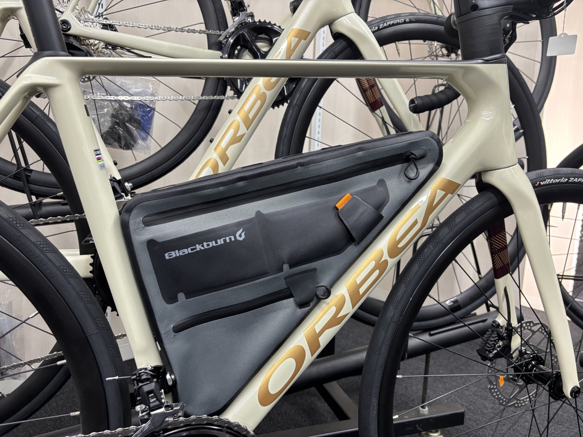 フレームの形状やサイズに左右されるバッグなので、店頭にあるいろんな完成車に合わせてみました。