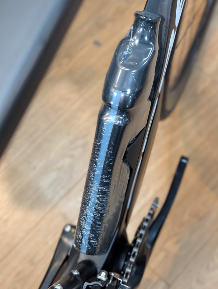 ヘッドチューブも空力を意識されているシェイプな形状をしています。