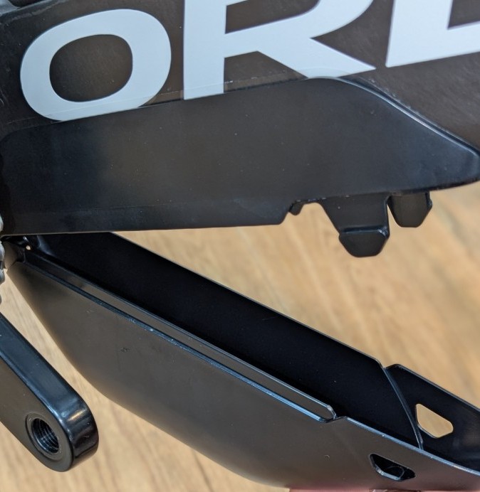 上から見るとダウンチューブからはみ出さないように設計されており、非常に薄く、乱気流を起こさないよう徹底されている作りです。