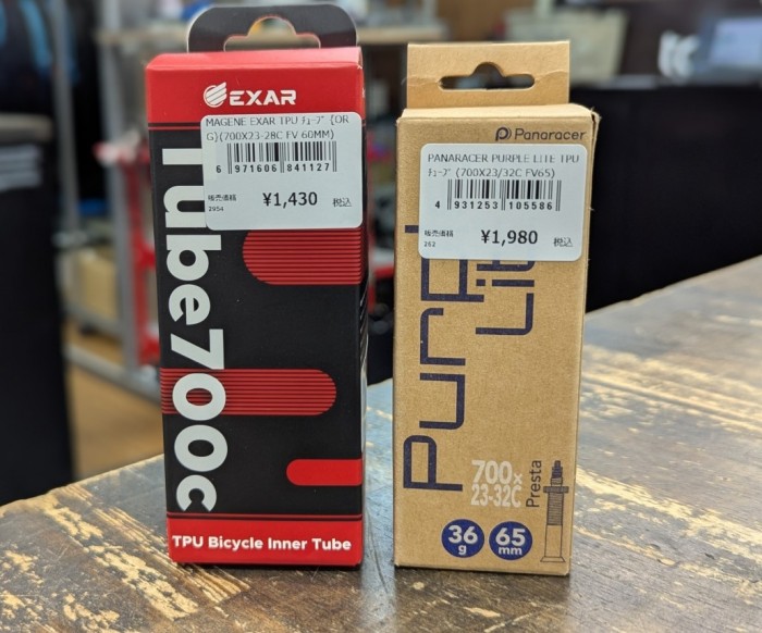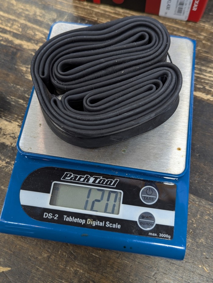 チューブは純正のブチルが、約120g、TPUチューブが36gとなります。