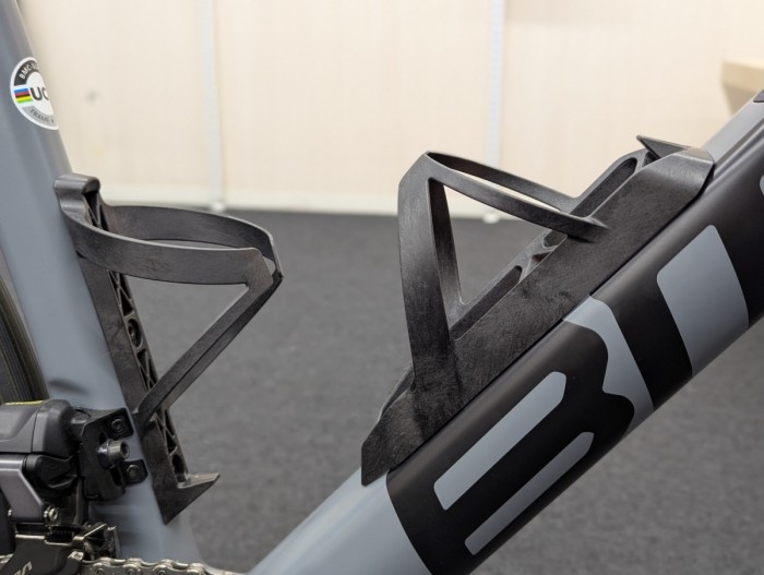 ダウンチューブとシートチューブでは、フレームの太さが違うので、それぞれに合った形状のボトルケージとなっています!