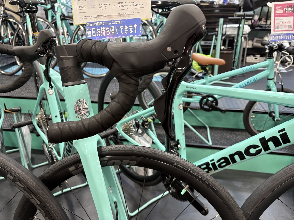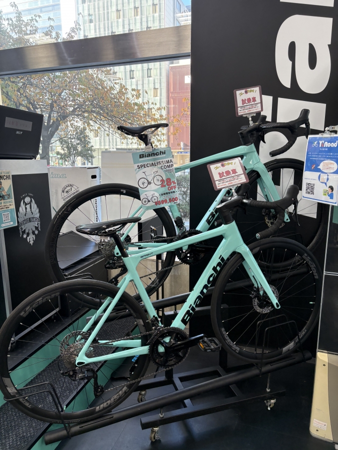 ワイズロード名古屋本館にはBIANCHIコーナーがあります。様々なBIANCHIの車体を取り揃えており、現在行っているブラックフライデーセールの車体も沢山あります。セール車体は既に売れ始めているものも沢山あり、早い者勝ちなのでお早めに。