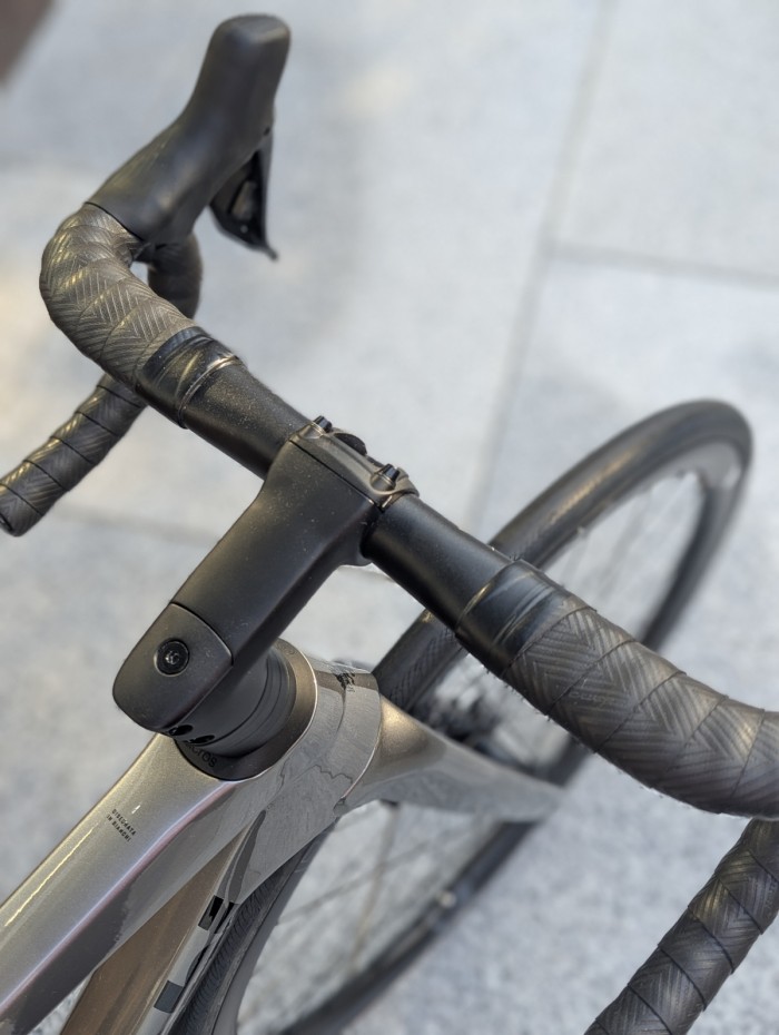 ハンドルトステムはアルミで、エアロ形状となってます。