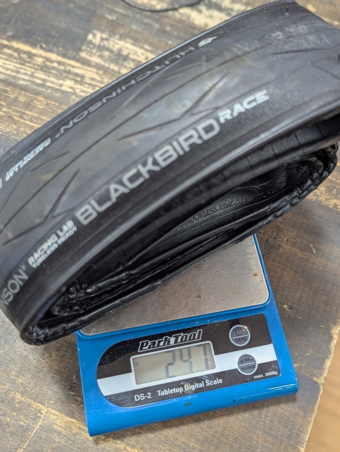 重量で言えば許容範囲ですが、チューブレスの28Cで240g台なのが驚きです!