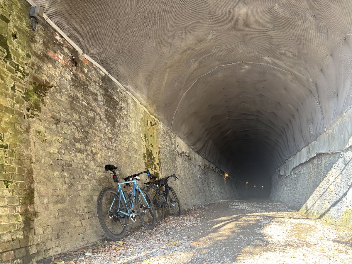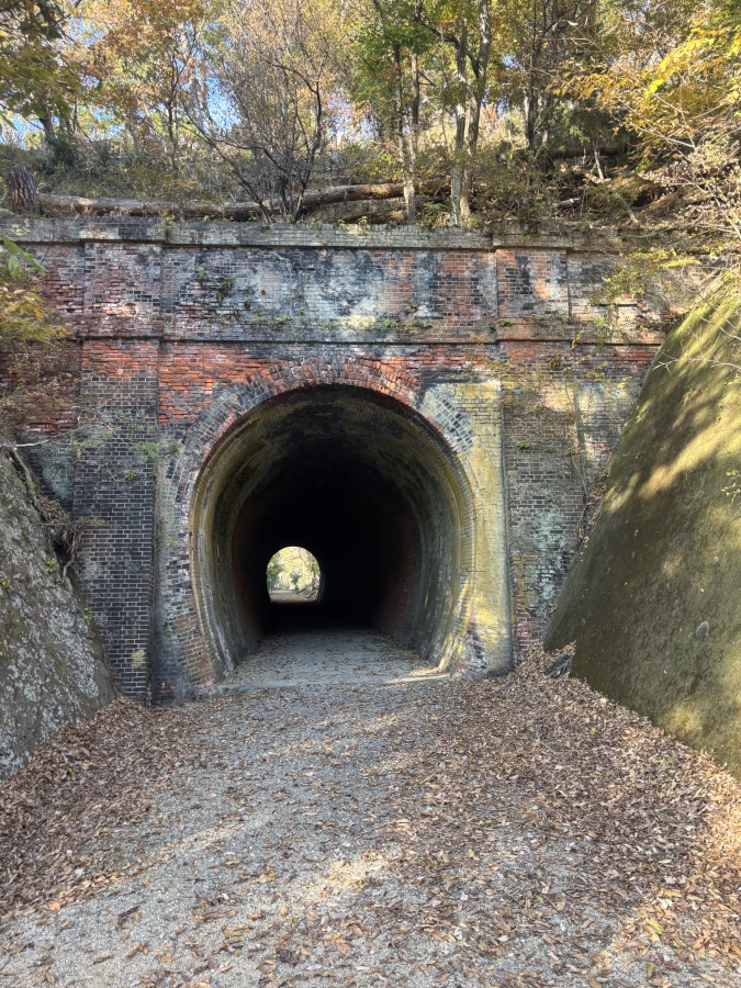 廃線敷ということで、路面はゴリッゴリのグラベルでした。終わった・・・持ってくる自転車絶対違うって。