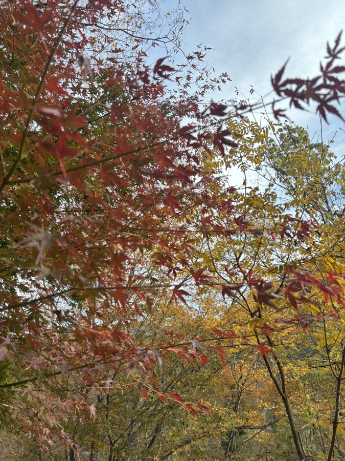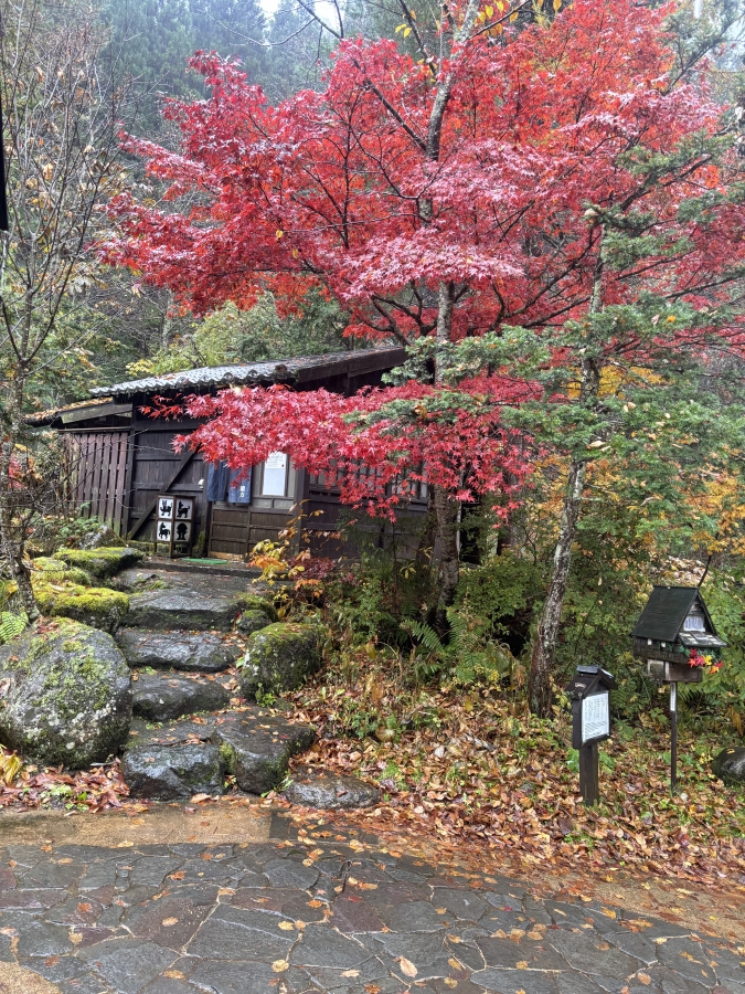 めっちゃ鮮やかな紅葉に、こじんまりとした温泉!