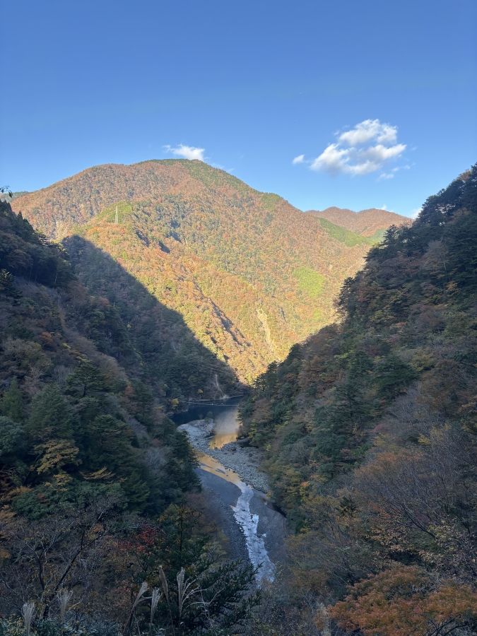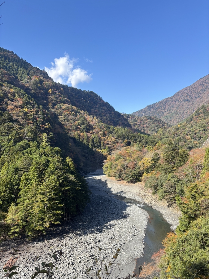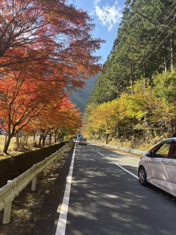 がんばって山の奥地へ入って、目的地である寸又峡に到着。実は、ここは人が多く集まる観光地です。特にこの紅葉シーズンはかなり人が多かったです。
