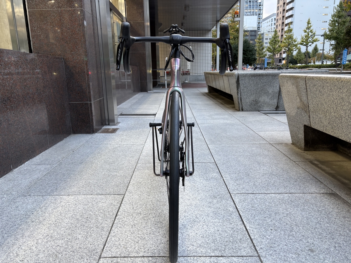 新しいダウンチューブは、厚みが薄くなって空力性能が向上しています。