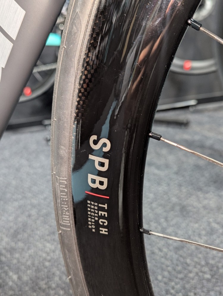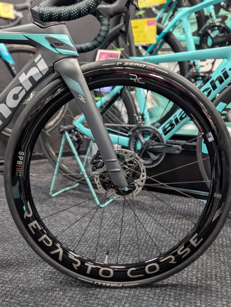 REPARTO CORSEというビアンキのパーツブランドのカーボンホイールが装備されています。