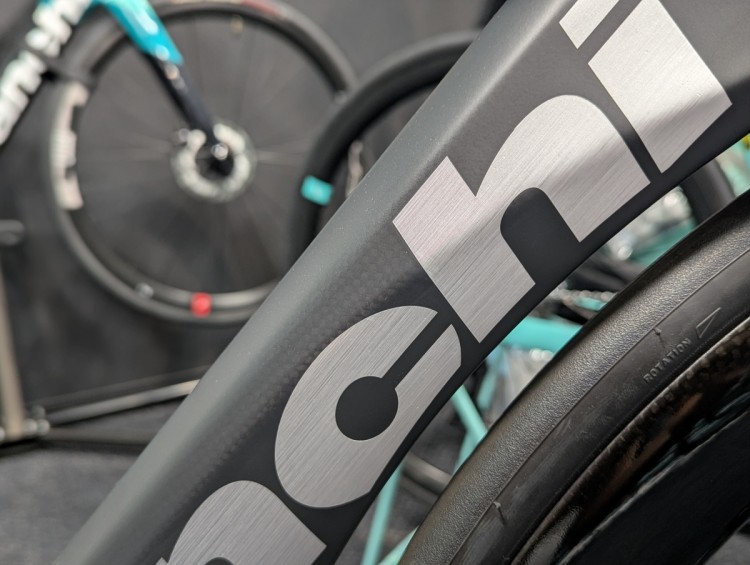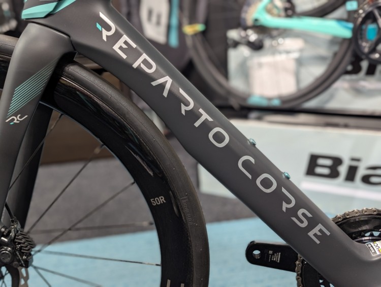 左側のダウンチューブにはBIANCHIのロゴではなく、REPARTO CORSEの文字があります。