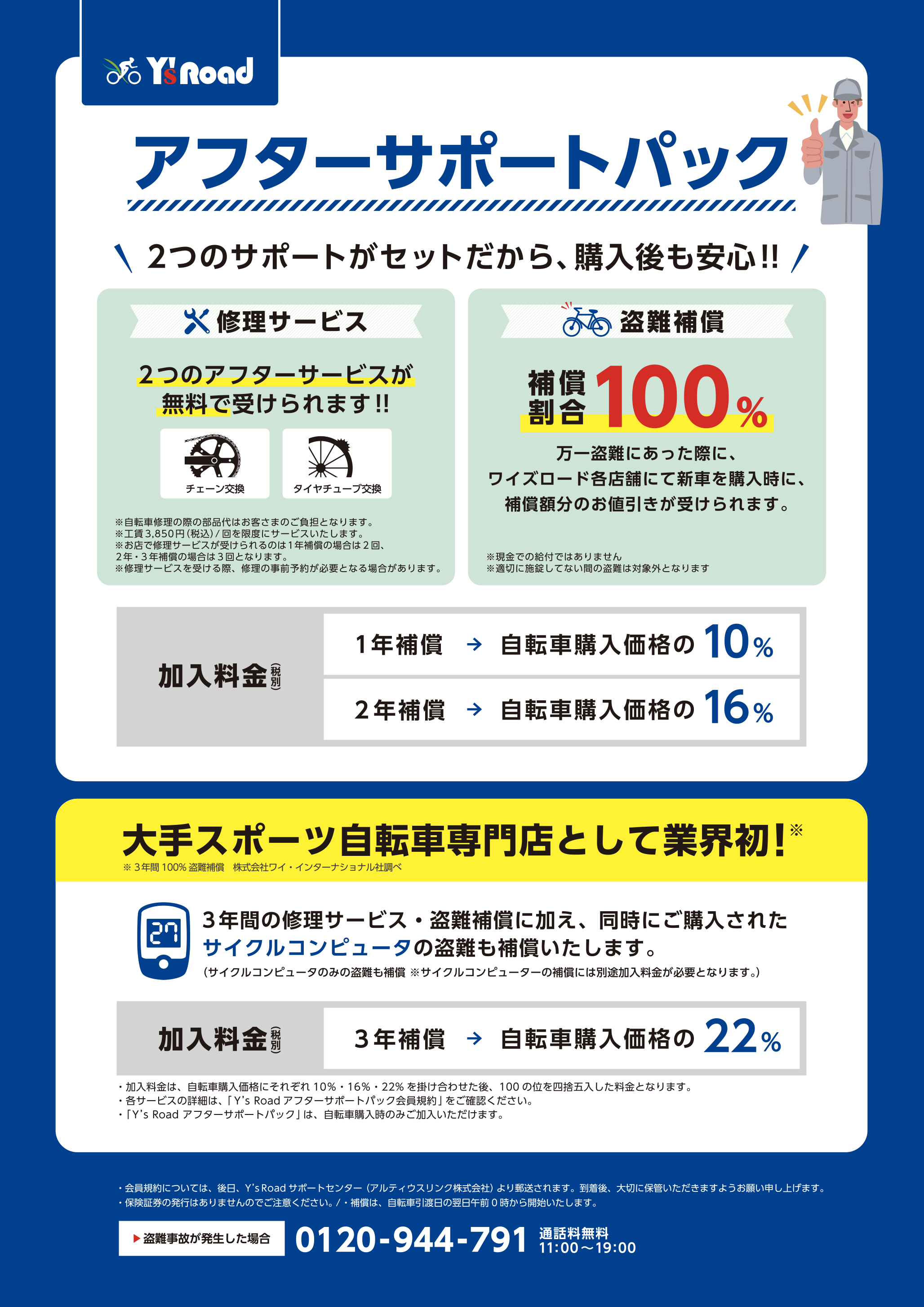 そこで、新車購入の方限定で、「アフターサポートパック」という盗難補償もご用意しております。