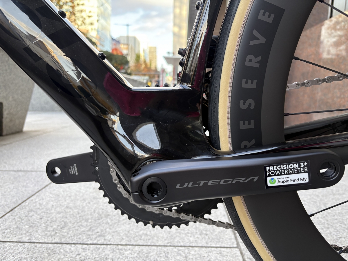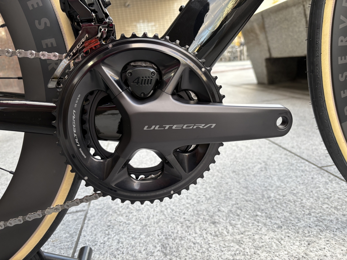 クランクには4iiiiのパワーメーターが。完成車にパワーメーターが着いてくる。これは嬉しいですね。もちろん両足計測の安心安全仕様。両足計測のパワーメーターは非常に高額なので、普段からトレーニングを行うアナタにはもってこいのパーツ。