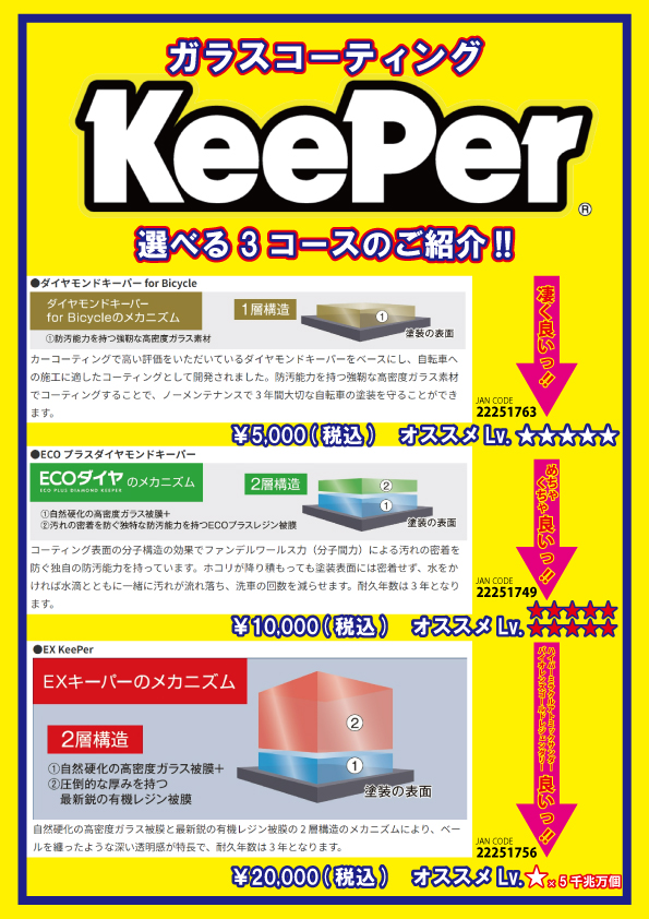 こちらも新車を購入された方限定で、KEEPERコーティングを行っています。