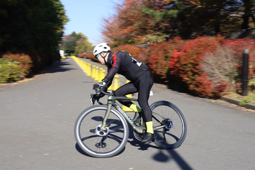 更にタイヤは幅広化よって低圧になっているため、カーブでの粘りがもっとあって意のままに曲がれるピナレロハンドリングをいりさわも感じることが出来ました。