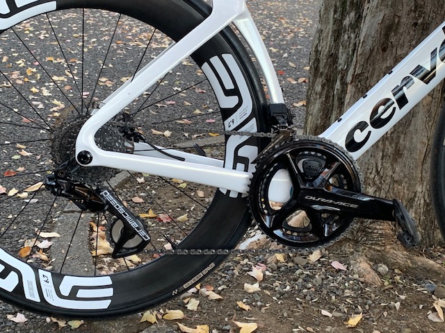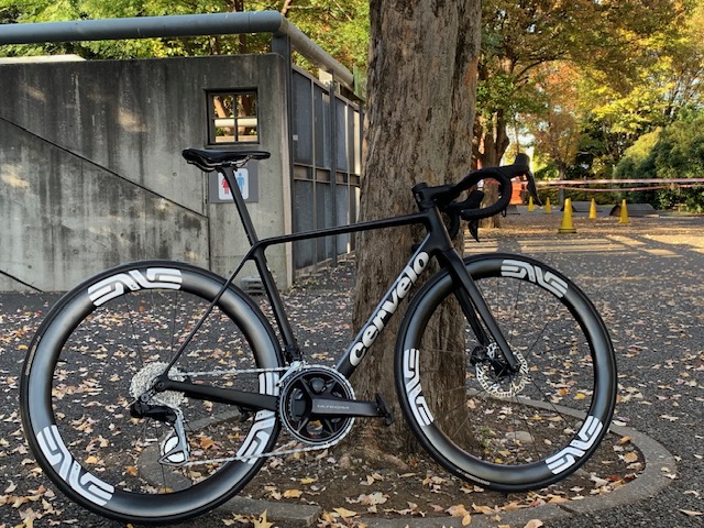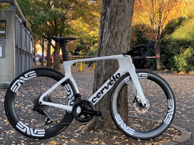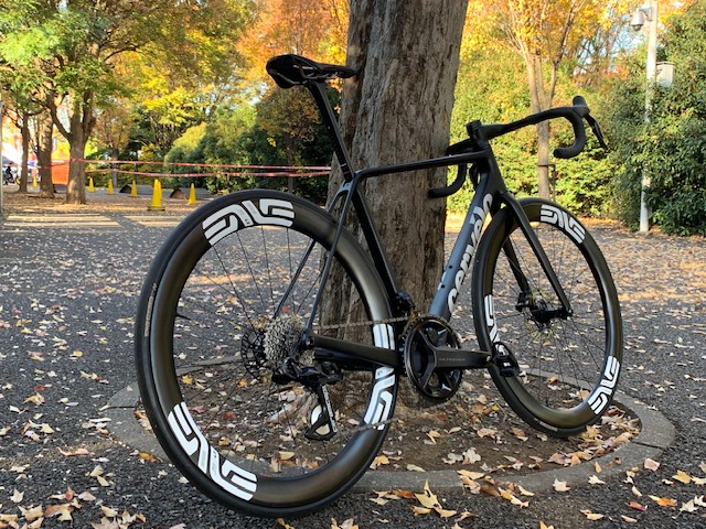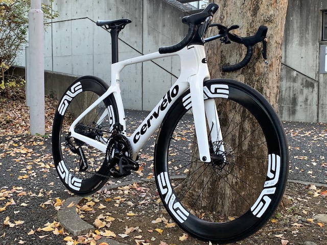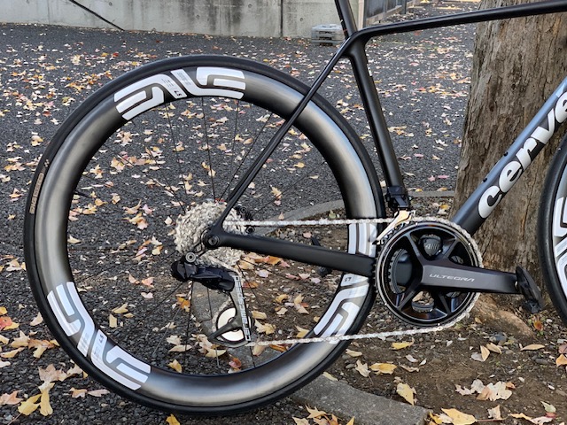 試乗車R5、コンポーネントはSHIMANO・ULTEGRA Di2。ホイールはエンビ社製。